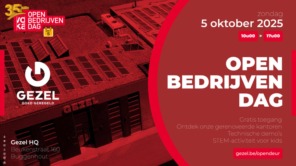 Op zondag 5 oktober – tijdens de VOKA Openbedrijvendag 2025 – opent Gezel de gerenoveerde kantoorgebouwen in de Beukenstraat in Buggenhout. Ontdek onze vernieuwde thuisbasis, bekijk demo’s van onze technieken en leer onze mensen kennen. Ook voor de jongsten is er een leuke STEM-activiteit!