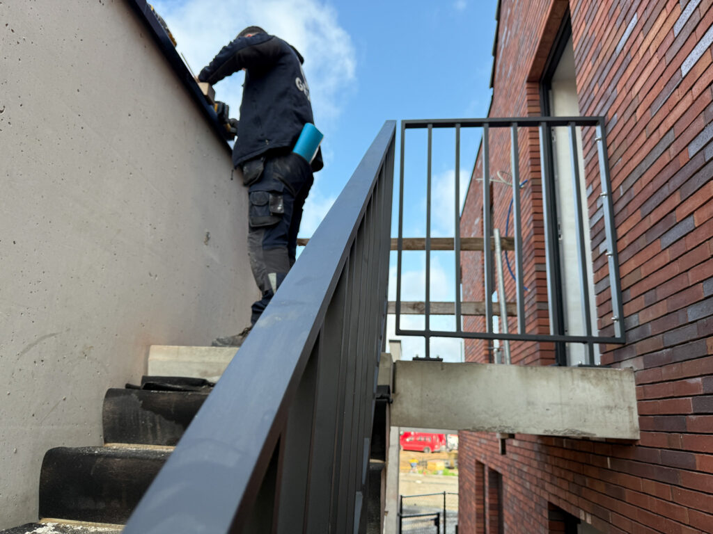 Voor een nieuwbouwproject in Oudegem werkte Gezel Metal de borstweringen uit voor de terrassen van de appartementen. Dit eigen ontwerp werd volledig in-house gemaakt en geïnstalleerd door onze stielmannen van Gezel Metal.